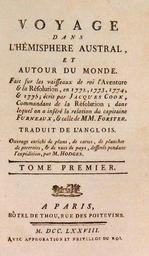 | Keywords: Voyage dans l'hémisphere austral, et autour du Monde, James Cook, Paris, 1778.jpg James Cook e outros Voyage dans l'hémisphere austral et autour du Monde Fait sur les vaisseaux de roi l'Aventura la Resolution en 1772 1773 1774 1775 ; écrit par Jacques Cook Commandant de la Resolution ; dans lequel on a inséré la relation du capitaine Furneaux celle de MM Forster Paris Hôtel de Thou 1778 6 vols França Pub in catálogo Veritatis Art Auctioneers Leilão XII Livros e Manuscritos n º 73 Lisboa 18 de julho de 2012 p 20 Portugal avaliado entre 250 e 500 euros 48919 1778 Jacques Cook et al PD-old-100-1923 1800 Files uploaded by Darwinius 1778 books Title pages from France Geography books book covers single pages etc Books about James Cook |