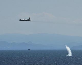 | Keywords: VP-8 “Fighting Tigers” and JMSDF Conduct MINEX 120719-N-ZZ999-955.jpg en A P-3C Orion aircraft assigned to the Fighting Tigers of Patrol Squadron 8 drops an MK-65 quick strike mine as part of a bilateral mining exercise conducted with the Japan Maritime Self Defense Force The Jacksonville Fla -based VP-8 is on a six-month deployment to the 7th Fleet area of responsibility 2012-07-19 VP https //www dvidshub net/image/630102 120719-N-ZZ999-955 2012-07-22 23 20 PACIFIC OCEAN USPACOM AT SEA PD-USGov-Military-Navy P-3C Orion Images from DoD uploaded by Fæ |