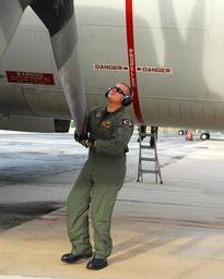 | Keywords: VP-8 and JMSDF participate in GUAMEX exercise 120810-N-ZA795-015.jpg en Naval Aircrewman Mechanic 2nd Class Garrett Degner from Wausau Wis assigned to the Fighting Tigers of Patrol Squadron VP 8 reposition a propeller of a P-3C Orion aircraft upon return from a mission The Jacksonville Fla based VP-8 and JMSDF are participating in the bilateral exercise GUAMEX in the vicinity of Guam 2012-08-10 Petty Officer 2nd Class Pedro Rodriguez https //www dvidshub net/image/642518 120810-N-ZA795-015 2012-08-10 03 36 YIGO AL US PD-USGov-Military-Navy P-3C Orion Images from DoD uploaded by Fæ |