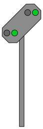 | Keywords: Vr1 Licht.svg Deutsches Licht-Vorsignal Vr1 Fahrt erwarten Selbstgezeichnet nach der Beschreibung der Eisenbahn-Signalordnung Die Lichtvorsignale zeigen zwei nach rechts steigende Lichter Zwei grüne Lichter nach rechts steigend given in the Eisenbahn-Signalordnung 2006-02-04 own assumed Qualle Diagrams of railway signals in Germany |