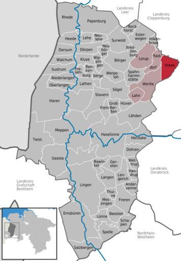 | Keywords: Vrees in EL.svg DeLocMaps Vrees Landkreis Emsland District of Emsland Emsland L'arrondissement du Pays de l'Ems Arrondissement du Pays de l'Ems Niedersachsen Basse-Saxe Lower Saxony TUBS/Translation own Adobe Illustrator based on File Lower Saxony location map svg NordNordWest http //www geodaten niedersachsen de/master/C17415881_N17416128_L20_D0_I15258844 htm Niedersachsen Viewer http //www geomdk niedersachsen de/data/lgn/info/dgm5_lk454 pdf Koordinierungsstelle GDI-NI beim Landesbetrieb Landesvermessung und Geobasisinformation Niedersachsen DGM 5 Verfügbarkeit Landkreis/Stadt Landkreis Emsland File Locator map EL in Lower Saxony svg TUBS 2009-07-04 Hagar66 based on work of TUBS <gallery> file Municipalities in EL svg </gallery> TUBS GFDL cc-by-3 0 2 5 2 0 1 0 cc-by-sa-3 0 2 5 2 0 1 0 TUBS/Credits Locator maps of municipalities in Landkreis Emsland Vrees |