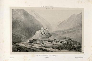 | Keywords: Vue de la petite ville de Vénasque - Espagne - Fonds Ancely - B315556101 A PETIT 1 028.jpg Fait partie d'un recueil de 30 lithographies chiffrées de 1 à 30 La lithographie n°16 est sur double page il n'y a pas de lithographie chiffrée 17 Les planches du premier tirage de cette suite imprimées chez Thierry à Paris ont été publiées en 1854 et 1855 L'éditeur de Victor Petit n'est plus celui des précédents recueils Bassy à Pau mais Dulon libraire-éditeur à Bagnères-de-Luchon et à Saintes Dulon publiera ultérieurement à plusieurs reprises des recueils de vues de Luchon et autres sites des Pyrénées par Victor Petit dont la composition est très variable Les planches ne seront plus tirées chez Thierry mais par l'imprimerie J Monrocq à Paris Pièce jointe entre la pl 6 et la pl 7 une pl extraite de Les Pyrénées a été ajoutée Sa légende est la suivante Cirque de Gavarnie - Vue prise du Chemin de la Coumélie Cette planche a été éditée par Dulon mais a été imprimée chez J Monrocq à Paris Ancely René 1876 - 1966 Possesseur fre public domain domaine public B315556101_A_PETIT_1_028 jpg image/jpeg 1 f de pl lithogr ; 26 5 cm oblong Dulon Éditeur Thierry 17 -18 ; imprimeur-lithographe Imprimeur http //numerique bibliotheque toulouse fr/collect/general/index/assoc//ark /74899/B315556101_A_PETIT_1_028 dir/B315556101_A_PETIT_1_028 jpg Bibliothèque municipale de Toulouse A-PETIT 1-27 Creator Victor Jean-Baptiste Petit http //catalogues toulouse fr/web2/tramp2 exe/do_keyword_search/log_in setting_key BMT1 servers 1home query p001940 vignette http //numerique bibliotheque toulouse fr/collect/general/index/assoc//ark /74899/B315556101_A_PETIT_1_028 dir/B315556101_A_PETIT_1_028_thumb jpeg century 19 Vue de la petite ville de Vénasque - Espagne B315556101_A_PETIT_1_028 lithography - print Women in art Castles in art Ramparts Victor Jean-Baptiste Petit Castles in the province of Huesca History of Pyrénées Benasque Bridges in art Towers in art Churches in art Mounds Bell towers in art Mountains in art Roads in art Men in art Houses in art Rivers in art Esera River |