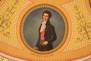 Keywords: Vuncenzo Bellini.JPG en Painting at the Ceiling of the Apollon Theater in Ermoupolis 2015-04-24 16 01 41 own Zacharias Mitzelos other versions cc-zero Uploaded with UploadWizard Apollon Theatre Syros