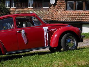 Keywords: vw beetle bridal car auto oldtimer vw vehicle classic old volkswagen red wedding car bridal cars loop beetle cabriolet convertible car body shape pkw open lights spotlight blinker bumper wheel rim