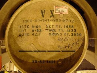 Keywords: VX storage.jpeg en The valve end of the last Newport TC before it is drained of nerve agent VX http //www cma army mil/home aspx Government employee/contractor in offical performance of public duties PD-USGov Chemical weapons