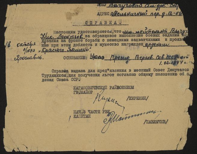 | Keywords: Vychugov Nikolai Leontievich document about the award.jpg  ru Сп авка о наг аждении младшего лейтенанта Вычугова  иколая Леонтьевича погибшего в 1942 году во в емя Сталинг адской битвы о деном К асного знамени 2014-10-13 14 04 54 Этот файл п едоставила для использования в википедии Викто ия Вале ьевна Кохенде фе главный х анитель фондов музея-заповедника Сталинг адская битва http //stalingrad-battle ru/ Сайт музея заповедника О игинал х анится в фондах музея-заповедника author Этот файл п едоставила для использования в википедии Викто ия Вале ьевна Кохенде фе главный х анитель фондов музея-заповедника Сталинг адская битва http //stalingrad-battle ru/ Сайт музея заповедника other versions Custom license marker 2014 11 06 PD-Russia Uploaded with UploadWizard Battle of Stalingrad Documents in the Volgograd Panorama Museum People associated with World War II from the Soviet Union World War II military people of the Soviet Union Vychugov Nikolai Leontievich |