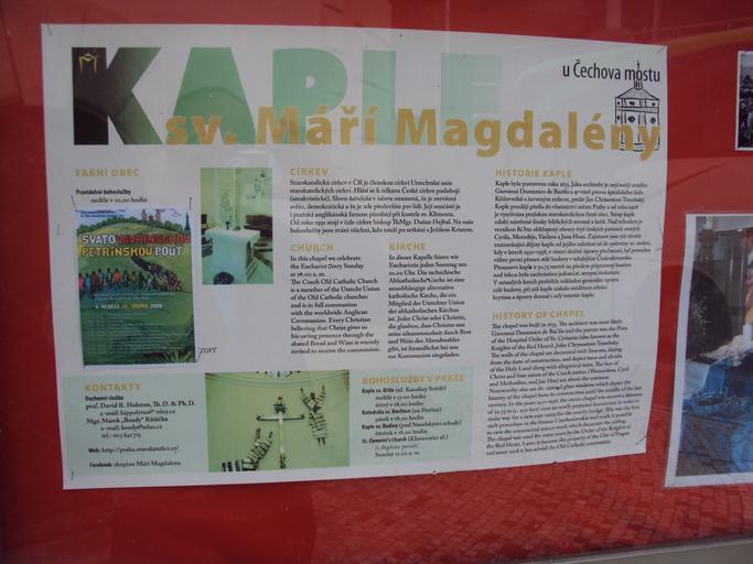 Keywords: Vývěska u kaple MM.jpg cs Vývěska u přilehlé kaple sv Maří Magdaleny údaje o Starokatolické církvi v ČR own Zákupák 2010-08-14 Kaple svaté Máří Magdaleny pod Letnou Place legend boards in Prague