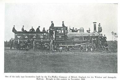 | Keywords: W&ARGabriel.jpg en Photograph of Windsor and Annapolis Railway locomotive Gabriel at Kentville Nova Scotia circa 1870 History of the Dominion Atlantic Railway Anonymous 19th century photographer ca 1870 PD-old Steam locomotives of Canada History of Nova Scotia Kings County Nova Scotia Annapolis County Nova Scotia Dominion Atlantic Railway Fox Walker locomotives |