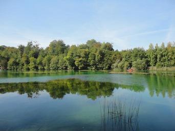 Keywords: wöhr lake mirroring water sky blue burghausen upper bavaria badesee