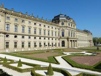 Keywords: würzburg bavaria swiss francs germany church building historically residence castle palace park facade garden boxwood plant decorative book hedge architectural garden