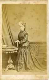 | Keywords: W H Gill Devonport 002.jpg 1860-1900 carte de visite photo of young woman in silk dress by W H Gill of 88 James Street Devonport England ;Points of interest The woman has a purse or bag fixed to her waist The tip-up Indian table is of a type manufactured and exported in the 1880s-1890s The tip-up mechanism did not work properly due to the fixed fringe on the table-top so that the top could not rest vertically They were very heavy and often made of padouk wood There is a large version painted white in the St Petersburg palace in the conservatory Scan photo in my possession 1860-1900 WH Gill out of copyright The reverse of this carte de visite is here File W H Gill Devonport 002a jpg PD-Old W H Gill of Devonport Portrait photographs of unidentified women 1860c 19th-century portrait photographs of standing women at full length 1860c Cartes de visite Tables in portrait photographs 1860c |
