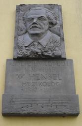 Keywords: W. Hensel.JPG Plaketa W Henzela na žlutém domě poblíž školní jídelny v Šanově own Takmocsekretovanej 2012 Buildings in Teplice U Teplické školní jídelny v Šanově Cc-zero