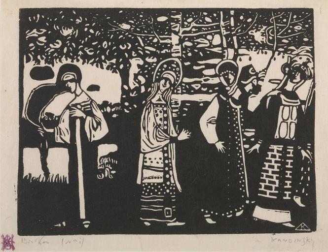 | Keywords: W.Kandinsky, Frauen im Wald, 1907.jpg fr Titre Femmes dans les bois Frauen im Wald Technique Xylogravure Dimension image 14 6 × 19 4 cm; feuille 16 8 × 21 6 cm Institution The Hilla von Rebay Foundation On extended loan to the Solomon R Guggenheim Museum New York 1970 1411 en Title Women in the Woods Frauen im Wald Technic Woodcut Size image 14 6 × 19 4 cm; sheet 16 8 × 21 6 cm Institution The Hilla von Rebay Foundation On extended loan to the Solomon R Guggenheim Museum New York 1970 1411 1907 http //blogs guggenheim org/checklist/kandinskys-early-representational-woodcuts/ Creator Wassily Kandinsky other versions PD-Art Uploaded with UploadWizard Woodcuts by Wassily Kandinsky |
