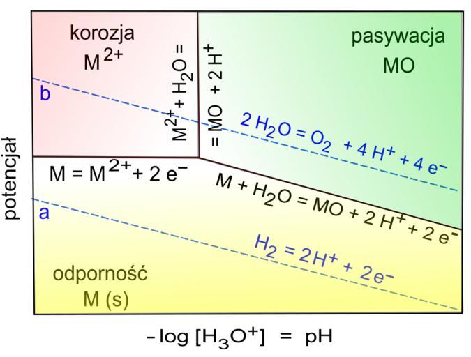 Keywords: W Pourbaix M-H2O.svg en Pourbaix Diagram example M-H20 pl Wykres Pourbaix przykład M-H2O own Joanna Kośmider 2011-05-11 Cc-zero Pourbaix diagrams