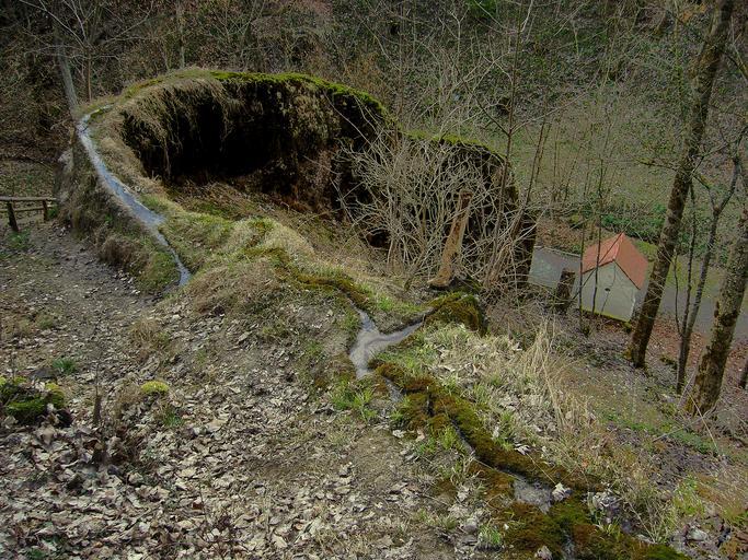 | Keywords: Wachsender-Felsen Usterling.jpg Wachsender Felsen bei Usterling Landau Niederbayern Phänomen Steinerne Rinne Wachsender Felsen growing rock Calcium carbonate saturated in runnel chemically precipitates to carbonate mineral Such properties found in Usterling Lower Bavaria and on Bavaria's Franconian Jura See de Steinerne Rinne own 2006-04-19 Edl Image 2006-04-16wachsender-felsen-usterling-oben-totale2 JPG Travertine Wachsender Felsen Uploads by User Ustill | ||||