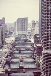 Keywords: wacker drive chicago downtown bridges river town city high rises metropole usa america