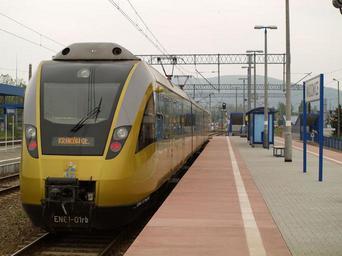 Keywords: Wadowice - perony.jpg pl Pociąg Papieski na stacji w wadowicach own Winstonbogarde 2009-05-05 Train station in Wadowice EN61 of Przewozy Regionalne