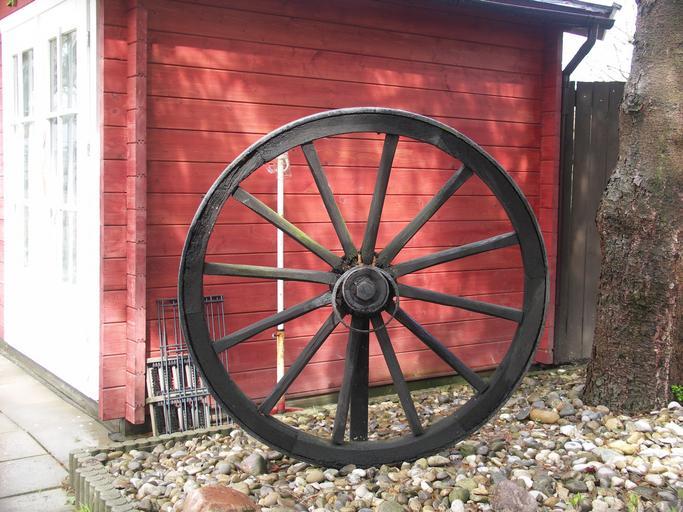 Keywords: wagon wheel spokes farmhouse antique wood wooden wheel wheel red hut