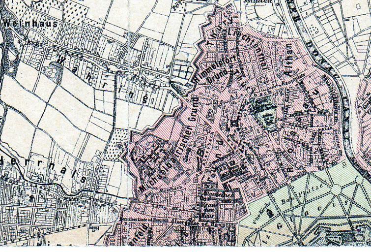 | Keywords: Währinger Straße anno 1856.jpeg Ausschnitt aus einem Stadtplan des Jahres 1856 reproduziert in der Plandarstellung Oertliche Entwicklung der Stadt Wien vom Mittelalter bis zur Gegenwart nach amtlichen Quellen bearbeitet von Conrad Grefe Verlag des Wiener Magistrats Wien 1892; der Ausschnitt zeigt die heutige Währinger Straße im heutigen 9 und 18 Wiener Gemeindebezirk; die 1850 nach Wien eingemeindeten Flächen sind rosa schraffiert das Glacis vor der Stadtmauer ist grün schraffiert 2011-11-11 own assumed Wolfgang J Kraus~commonswiki Cc-zero Check categories 2011 November 17 de wikipedia Währinger_Straße 1 Währinger Straße Vienna Conrad Grefe |