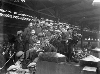 | Keywords: crowds boys dun laoghaire dunlaoghaire dublin ireland leinster caps overcoats gene tunney genetunney james joseph tunney jamesjosephtunney boxer boxing sports world heavyweight boxing champion worldheavyweightboxingchampion thursday 23 august 1928 1920s twenties independent newspapers collection independentnewspaperscollection national library of ireland nationallibraryofireland blackandwhite monochrome black and white Crowd of boys at Dun Laoghaire, Dublin eagerly awaiting the arrival of boxer Gene Tunney, who was the retired world heavyweight boxing champion. Tunney beat Jack Dempsey aka The Manassa Mauler twice, the first time in 1926 - taking the world title that Dempsey had held since 1919. Date: Thursday, 23 August 1928 NLI Ref.: INDH928 Crowd of boys at Dun Laoghaire, Dublin eagerly awaiting the arrival of boxer Gene Tunney, who was the retired world heavyweight boxing champion. Tunney beat Jack Dempsey aka The Manassa Mauler twice, the first time in 1926 - taking the world title that Dempsey had held since 1919. Date: Thursday, 23 August 1928 NLI Ref.: INDH928 |