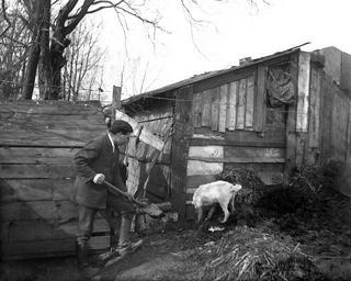 | Keywords: Waiting for rat to bolt YORYM-S148.jpg A man wearing a dark suit with plus-fours and a small round cap is standing over a rat-hole holding a spade A light-haired terrier is to the right sniffing along the bottom of one of the wooden sheds in the background To the far left is a chicken-coop - perhaps a pheasant-rearing area - and a bare deciduous tree depicted people depicted place 1900-1912 glass plate negative 125mm long edge x 100mm short edge institution Yorkshire Museum object history exhibition history credit line accession number YORYM S148 York Museums Trust image PD-old-70-1923 PD-US Uploaded with UploadWizard Images from The Sydney Harold Smith Collection |