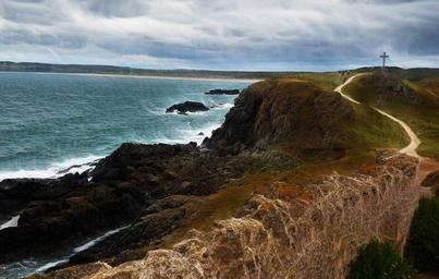 Keywords: wales welsh sea cross cliff sky rock ocean coast