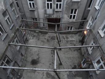 Keywords: Waliców 12 podwórko z góry 2016.jpg pl Widok z okna na podpierający konstrukcję kamienicy przy ulicy Waliców 12 stelaż 2016-12-22 15 12 11 own Cybularny other versions cc-zero Waliców Street in Warsaw