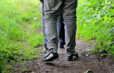 Keywords: walk go go for a walk away promenade for two together hiking grass step shoes legs in the clock movement nature out