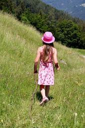 Keywords: walk hiking girl more person human child trail meadow grass nature