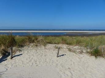 Keywords: walk on the beach sand white bright blue sky clear langeoog east frisia island coast north sea sea salt air beach rest horizon silent relax