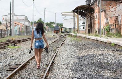 Keywords: walk rails station san francisco alagoinhas woman rustic back view