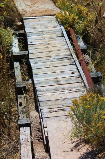 Keywords: walking bridge wooden path outdoors crossing nature wood summer walk new mexico desert landscape xeriscape rural