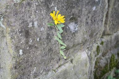 Keywords: wall flower stones grey stone wall plant blossom bloom yellow