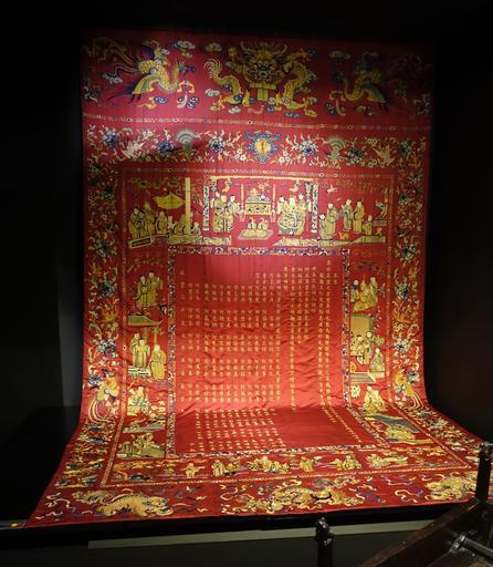 | Keywords: Wall tapestry with allusions to the gods of the Hong Kong Mio (Hong Chan Kuan Mio) temple, Rua de Cinco de Outubro, Macau, 1930s, embroidered satin silk - Museu do Oriente - Lisbon, Portugal - DSC07017.JPG en Exhibit in the Museu do Oriente - Lisbon Portugal This work is old enough so that it is in the public domain Photography was permitted in the museum without restriction 2014-10-05 own Daderot other versions cc-zero Uploaded with UploadWizard Art of China in the Museu do Oriente | ||||