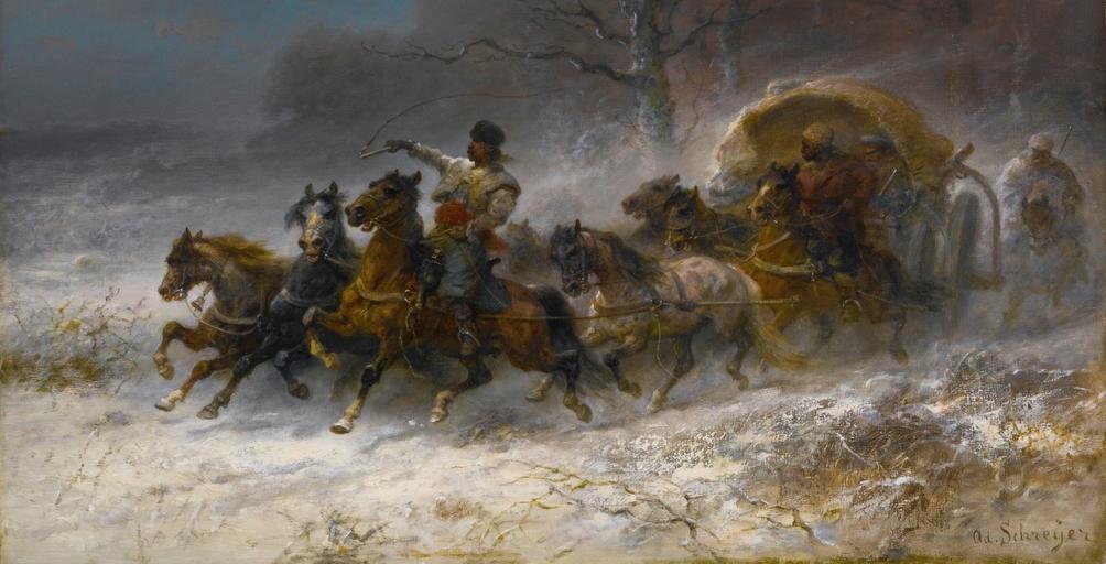 | Keywords: 'Wallachians on the Move in a Winter Landscape' by Adolf Schreyer.jpg  en Wallachians on the Move in a Winter Landscape by Adolf Schreyer oil on canvas 60 3 by 112 1 cm Sotheby's Adolf Schreyer Adolf Schreyer Wallachians History of Wallachia PD-old-100  |