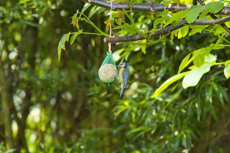 Keywords: walnut tree bird tit fat balls eat hunger cute garden green early summer