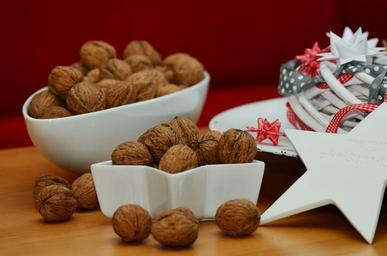 Keywords: walnuts nuts christmas christmas decoration food fruit bowl eat healthy brown star white