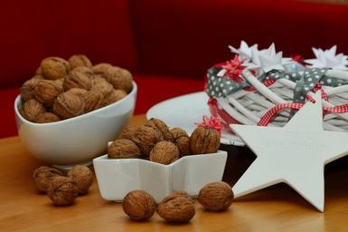Keywords: walnuts nuts christmas christmas decoration food fruit bowl eat healthy brown star white