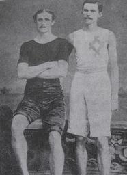 | Keywords: Walter George - Lon Myers.jpg fr Laurence Myers à droite athlète américain né le 16 février 1858 et mort le 15 février 1899 spécialiste de nombreuses disciplines du 50 yd au mile Au côté de Walter George http //www alfieshrubb ca/index php/photo_album/image_full/377/ author Pd-old Lon Myers |