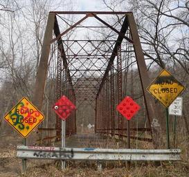 | Keywords: Waltmire Bridge (Mackinaw River) from SW 2.jpg 99000112 Tazewell County Illinois The bridge carries a county road named Locust across the Mackinaw River The bridge is oriented northeast-southwest; the river flows generally northwestward at this point View in the photo is from the southwest left is downstream 2011-12-07 own Ammodramus cc-zero Uploaded with UploadWizard Pictures by Ammodramus Taken with Panasonic Lumix DMC-FZ20 Waltmire Bridge Tazewell County Illinois Road signs in Illinois Road closed signs in the United States Type 4 Object Markers in the United States Truck-related road signs in the United States |
