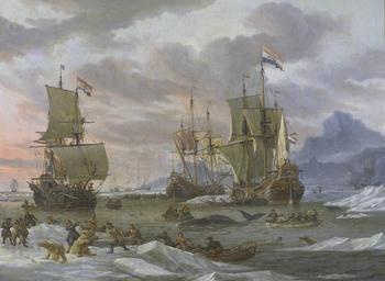 | Keywords: Walvisvangst in de Poolzee Rijksmuseum SK-A-4102.jpeg accession number SK-A-4102 Creator Abraham Storck credit line nl Walvisvangst Drie Hollandse walvisvaarders in de Poolzee tussen ijsbergen waar op walvissen wordt gejaagd Het schip rechts draagt de naam 'De Jonas' op de spiegel Rechts in de verte de bergen van een eiland Op de voorgrond jaagt de bemanning van enkele sloepen op ijsberen In het water bevinden zich ook enkele walrussen ; Abraham Storck 1644 “1708 olieverf op doek 1654 “1708 drager Height cm 50 5 drager Width cm 66 8 exhibition history Institution Rijksmuseum Technique oil canvas object history Acquisition 1964-07-01 object type Potential derivatives exist check http //commons wikimedia org/w/index php search Rijksmuseum+SK-A-4102 this search PD-US PD-old-100 Data and photography rights All data and all images made available through the API are either in the public domain or are subject to a CC0 license https //www rijksmuseum nl/en/api/terms-and-conditions-of-use cc-zero place of creation http //www rijksmuseum nl/collectie/SK-A-4102 Walvisvangst in de Poolzee Uploaded with GWToolset Walvisvangst in de Poolzee Rijksmuseum SK-A-4102 http //www rijksmuseum nl/media/assets/SK-A-4102 Images uploaded by Fæ Images from the Rijksmuseum Paintings in the Rijksmuseum Amsterdam Whales in art |