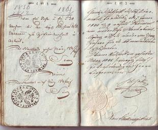 | Keywords: Wanderbuch journeyman Wobrausky from Daschitz 23.jpg Wanderbuch eines Kürschner-Gesellen Wanderbuch in Folge allerhöchsten Patents vom 24 Februar 1827 Für Anton Wobrausky von Daschitz aus Böhmen Chrudimer Kreis Seite 46-47 Wandrownická knizka die nevwysssjho patentu ob 24 vnora 1827 Travelling book of a Czechoslovakian furrier Page 46-47 from own possession 1827 First notice 18 März 1832 Last notice 8 August 1848 --Kürschner <span class signature-talk >talk</span> 20 10 19 February 2009 UTC thumb thumb thumb thumb See also/siehe auch Kürschner Wanderbücher PD-old Wanderbuch des Kürschner-Gesellen Wobrausky aus Daschitz |