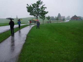 Keywords: wanderer rain umbrella fog sidewalk landscape away nature weather mood moist allgäu oy mittelberg