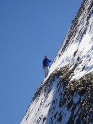 Keywords: wanderer trail mountain mountains path sidewalk winter steep steepness snow ice rock exposed climbing steep wall climb climber extremely bergtour hike mountain hike daring extreme sports