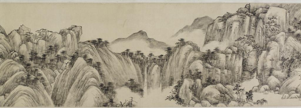 | Keywords: Wang Yuanqi -Wang Yuan-ch'i- - Free Spirits Among Streams and Mountains - Walters 35198 - View I.jpg When he painted this long handscroll in 1684 Wang Yuanqi Wang Yüan-ch'i the greatest orthodox master of the Qing Ch'ing dynasty had not yet developed the style for which he is best remembered Grounded in the lessons of his grandfather the artist Wang Shimin Wang Shih-min he aimed in his own way to make a work both as weighty and as free as that which was regarded as the greatest of Chinese handscrolls Huang Gongwang's Huang Kung-wang's Dwelling in the Fuchun Fu-ch'un Mountains of 1350 1684 ink paper H 13 x L 279 7/8 in 33 x 710 9 cm accession number 35 198 3491 James Freeman date and mode of acquisition unknown Walters Art Museum 1994 by purchase Museum purchase with funds provided by the W Alton Jones Foundation Acquisition Fund 1994 Free Spirits among Streams and Mountains A Chinese Handscroll by Wang Yuan-ch'i 1645-1715 The Walters Art Gallery Baltimore 1996 place of origin China Walters Art Museum license 2D Free Spirits Among Streams and Mountains Wang Yuanqi |