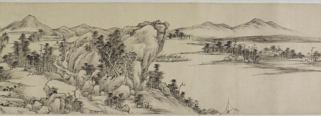 | Keywords: Wang Yuanqi -Wang Yuan-ch'i- - Free Spirits Among Streams and Mountains - Walters 35198 - View G.jpg When he painted this long handscroll in 1684 Wang Yuanqi Wang Yüan-ch'i the greatest orthodox master of the Qing Ch'ing dynasty had not yet developed the style for which he is best remembered Grounded in the lessons of his grandfather the artist Wang Shimin Wang Shih-min he aimed in his own way to make a work both as weighty and as free as that which was regarded as the greatest of Chinese handscrolls Huang Gongwang's Huang Kung-wang's Dwelling in the Fuchun Fu-ch'un Mountains of 1350 1684 ink paper H 13 x L 279 7/8 in 33 x 710 9 cm accession number 35 198 3491 James Freeman date and mode of acquisition unknown Walters Art Museum 1994 by purchase Museum purchase with funds provided by the W Alton Jones Foundation Acquisition Fund 1994 Free Spirits among Streams and Mountains A Chinese Handscroll by Wang Yuan-ch'i 1645-1715 The Walters Art Gallery Baltimore 1996 place of origin China Walters Art Museum license 2D Free Spirits Among Streams and Mountains Wang Yuanqi |