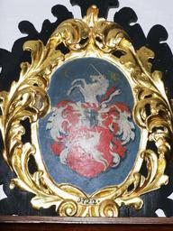| Keywords: Wappen14.JPG Eines der vielen Wappen der Kirchenspender in der Dreieinigkeitskirche in Buxach aus dem 18 Jahrhundert Monongramm C W Jahreszahl auf dem Rahmen 1722 Wappen in rot ein steigendes silbernes Einhorn Helmzier ein aufwachsendes silbernes Einhorn own 2008-06-14 User Memmingen Dreieinigkeitskirche Buxach Paintings of coats of arms Coats of arms to be classified Coats of arms of families of Germany - W Unicorns in coats of arms of families of Germany Unicorns in crest Unicorns salient in heraldry Coats of arms in Memmingen |