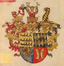 | Keywords: Wappen 1594 BSB cod icon 326 005 crop.jpg at http //daten digitale-sammlungen de/~db/0001/bsb00011882/images/index html seite 5 1594 anonymous PD-old-100 Wappen der zu Regensburg zur Reichsversammlung 1594 anwesenden Fürsten Coats of arms of Württemberg 1594 Frederick I of Württemberg Duke Coat of arms of the County of Montbéliard |