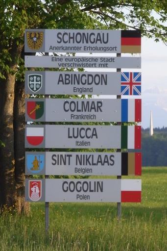 | Keywords: Wappen der Partnerstädte Schongaus.jpg Schongau Bavaria Germany from north showing the coats of arms of the twin towns of Schongau In the background on the right there is the spire of Schongau ™s church žVerklärung Christi Transfiguration of Jesus built 1968 seen in front of the Alps 2013-06-04 own Karl432 cc-zero Schongau Coats of arms of Colmar Coats of arms of Lucca Sint-Niklaas Coats of arms of Abingdon Oxfordshire Coats of arms of Gogolin Twin town signs in Germany Signs in Upper Bavaria Uploaded with UploadWizard Taken with Ricoh GX200 |