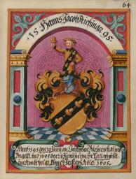 | Keywords: Wappenbuch Ungeldamt Regensburg 064r.jpg Wappenbuch des Ungeldamtes Regensburg Stadtarchiv Ravensburg Wappen der Assessoren des Ungeldamtes Hanns Jacob Aichinger http //gams uni-graz at/o rpb band12 1595 anonymous PD-old-100 Wappenbuch des Ungeldamtes Regensburg Coats of arms of Aichinger family |